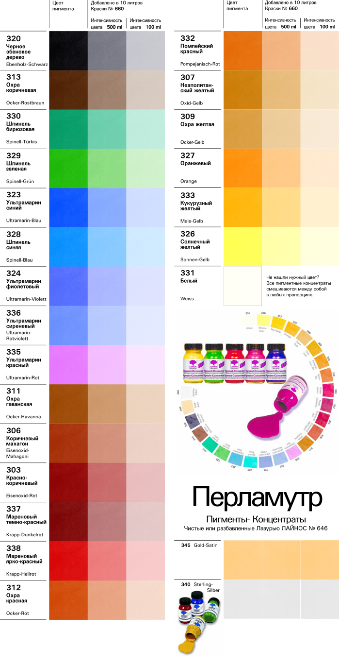 - Возможность индивидуального подбора цвета при помощи пигментов LEINOS арт. 668 или по каталогу NCS